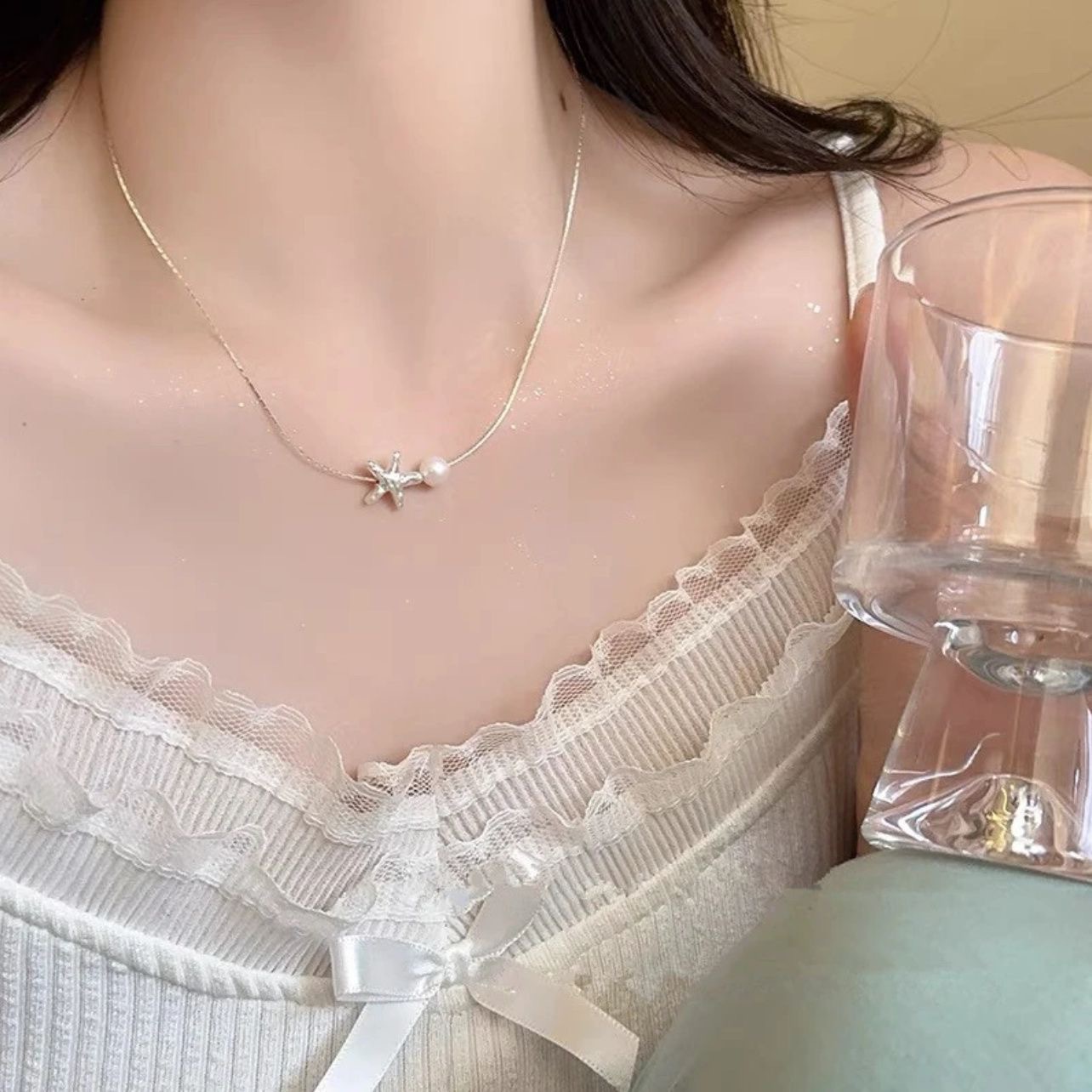 New starfish pearl necklace women's light luxury temperament sweet simple niche design clavicle chain manufacturers wholesale