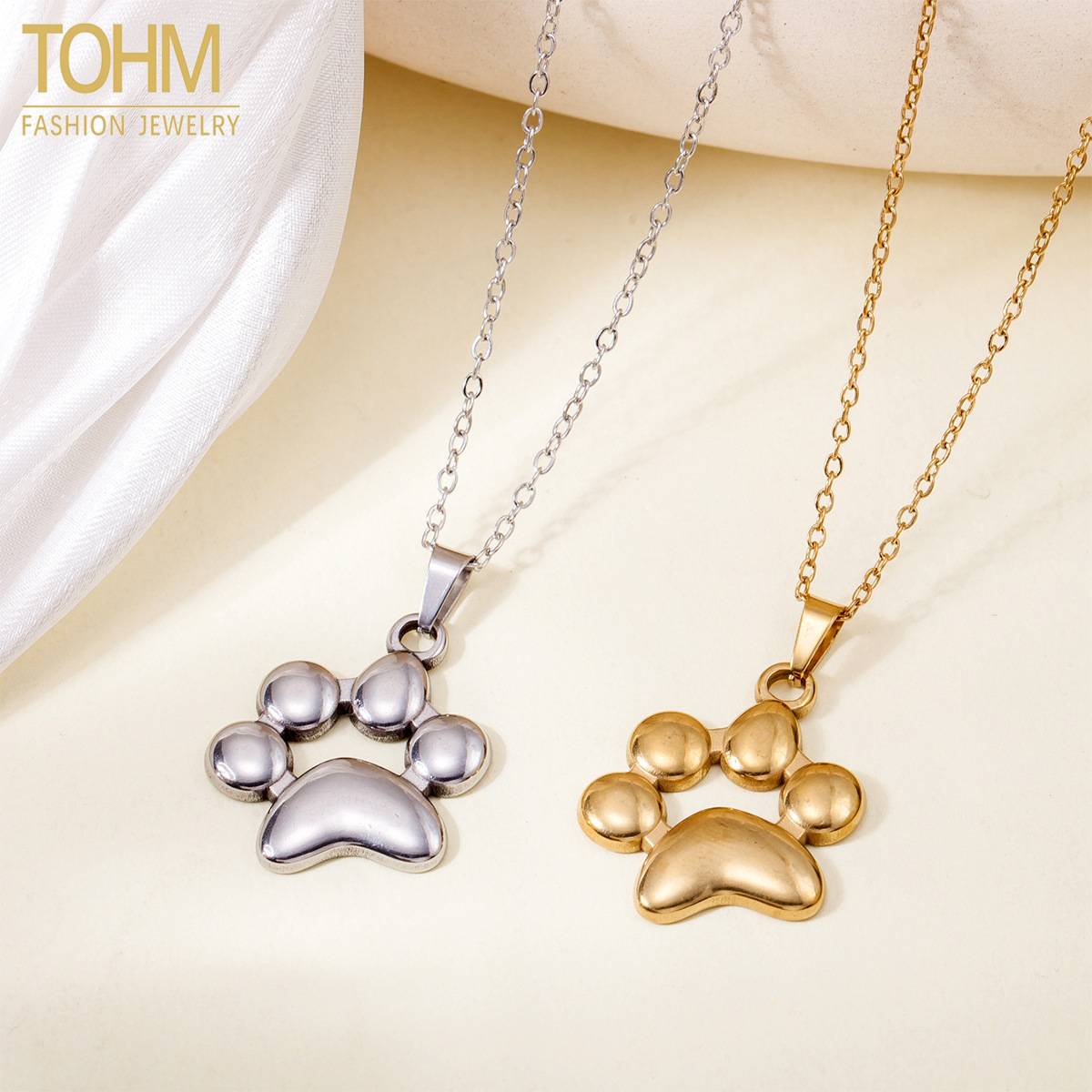 Tohm European and American Cross-Border Ins Style Animal Paw Print Pendant Necklace for Women Versatile Trendy Stainless Steel Accessory Clavicle Chain