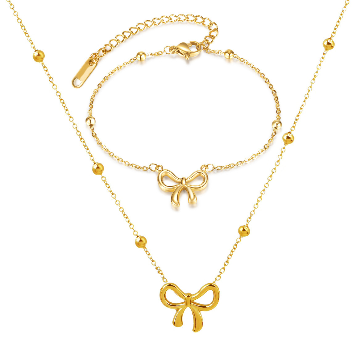 New Sweet Fugitive Princess Bow Ball Bead Titanium Steel Necklace Women's Fashion Simple Temperament Versatile Jewelry Wholesale