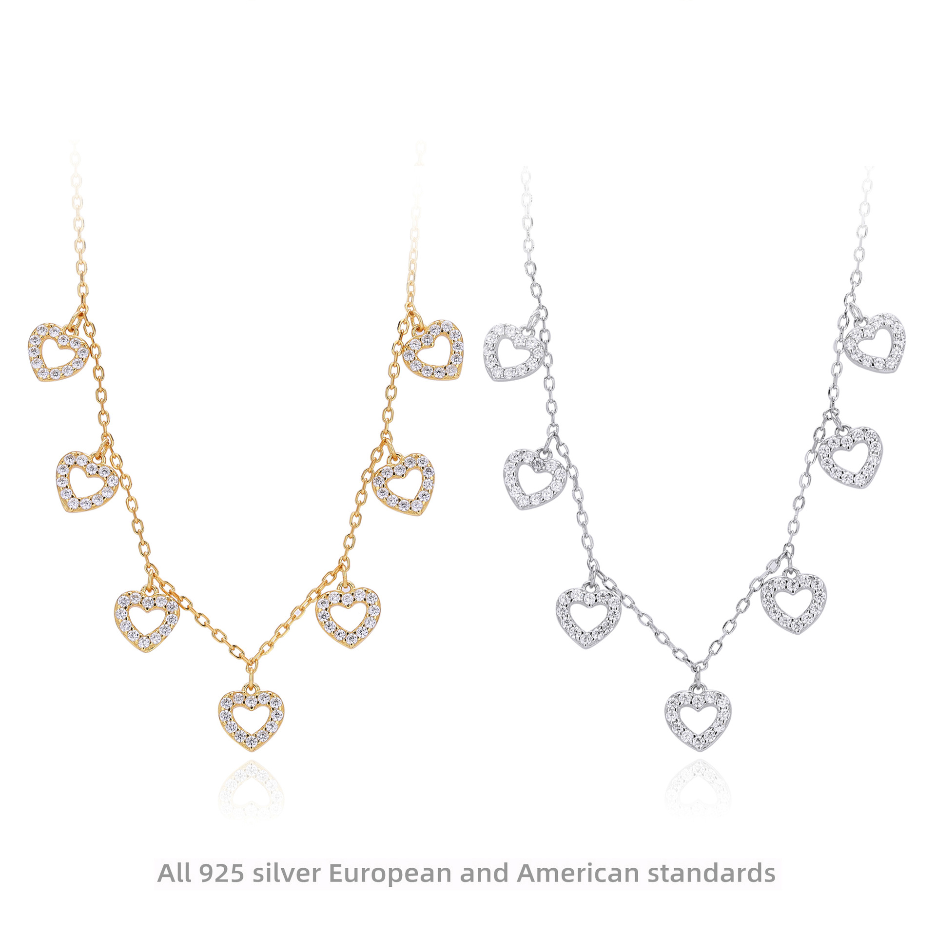 Cross-Border New S925 Sterling Silver Necklace, Fashionable and Exquisite Zirconium Heart Clavicle Chain, Sweet and Fresh Jewelry