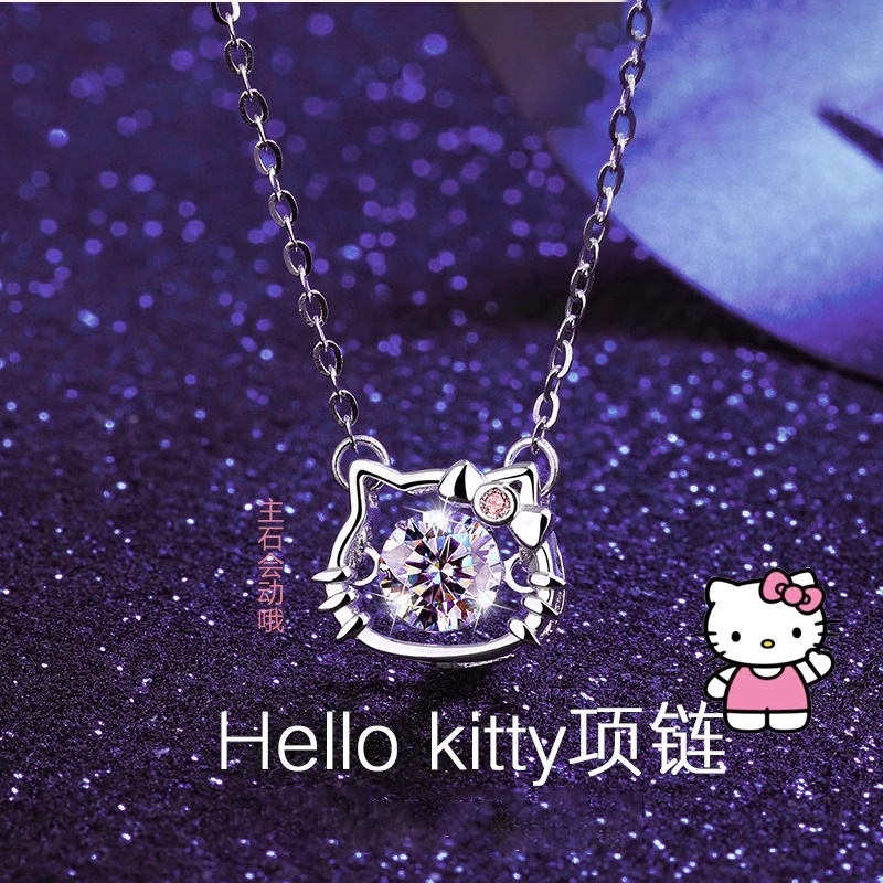 Smart Hello Kitty Cat Necklace, Cute and Compact Girl Pendant, Niche Design, Beating Heart Clavicle Chain