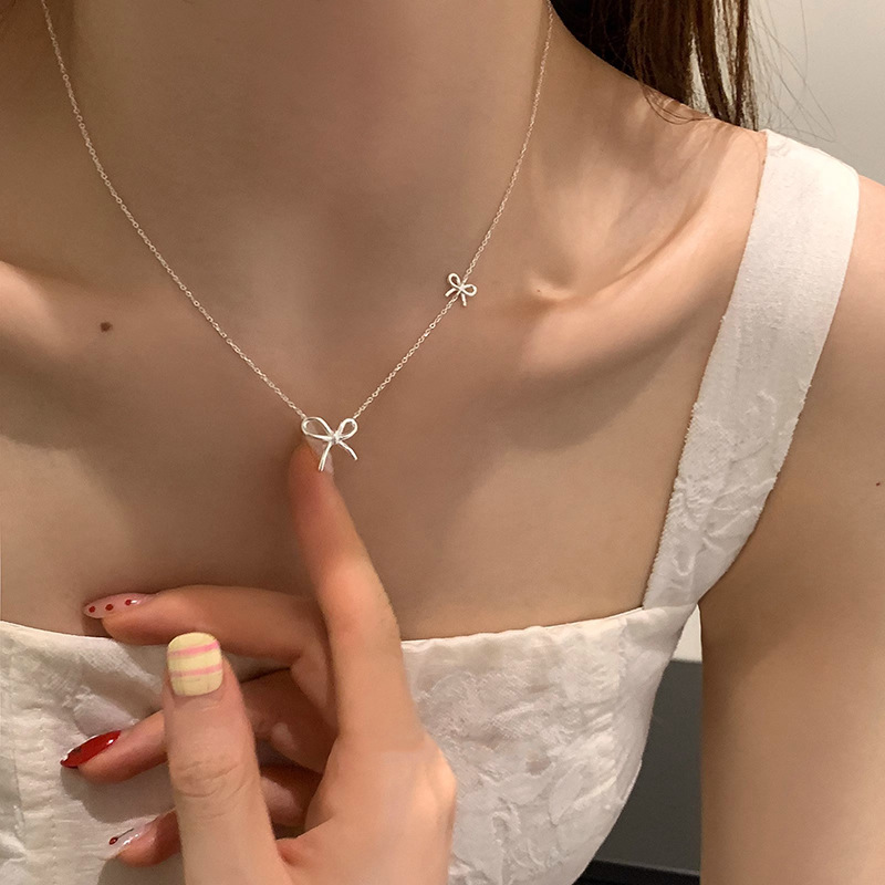 Rising Sun South Korea Ins Style Size Bow Necklace Female Ins Niche Sweet High-grade Clavicle Chain Line Necklace