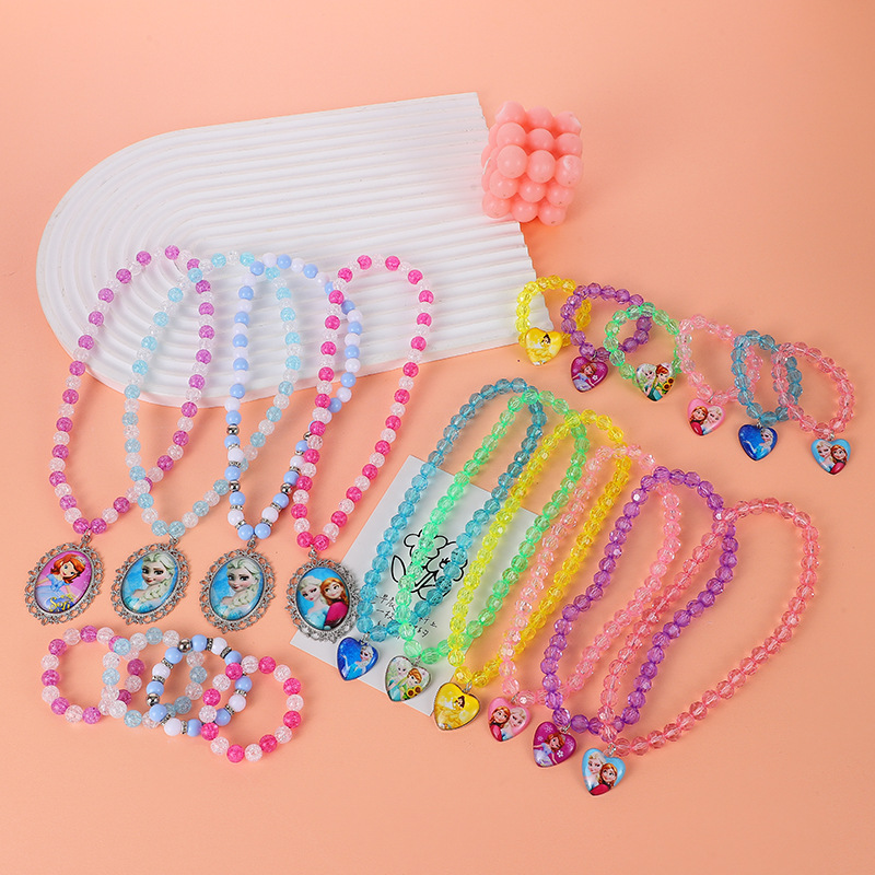 Cross-border cartoon little girl round bead necklace heart-shaped necklace Frozen independent packaging necklace in stock wholesale