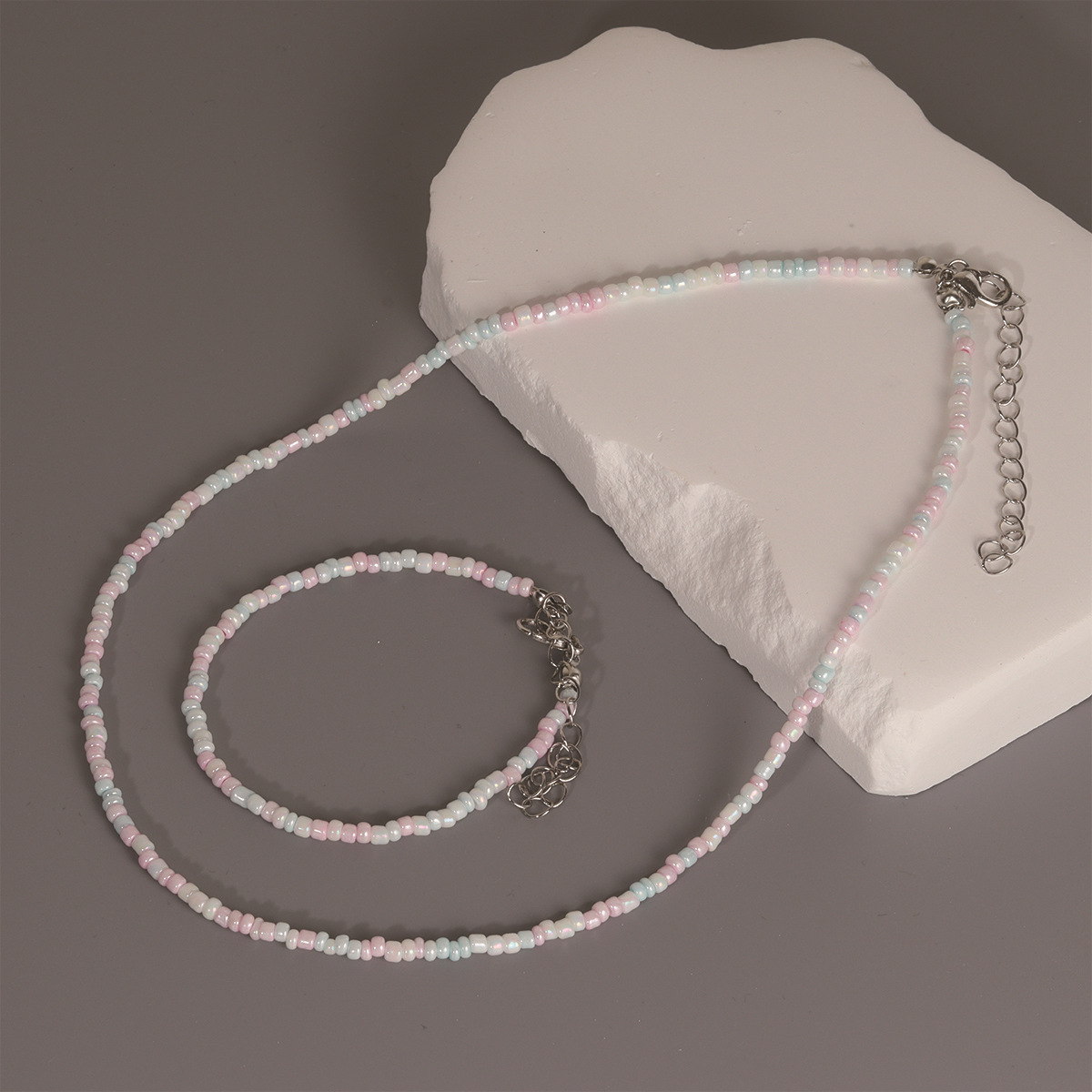 New Rice Bead Necklace Bracelet Set, Fashionable and Exquisite Women's Style, Sweet, Cute, Versatile and Simple Beaded Bracelet