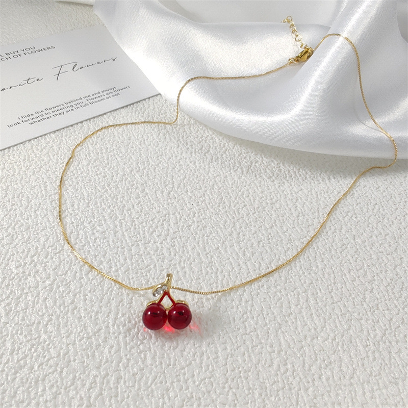 Sweet and Exquisite Cherry Titanium Steel Necklace for Girls, Accessible Luxury and High-End Internet Celebrity Clavicle Chain Copper Pendant Accessories New Trend