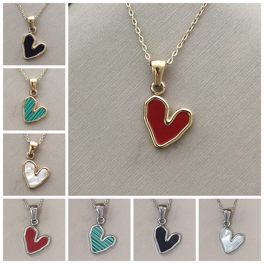 Dingrui simple love oil enamel red blue powder tricolor heart T necklace clavicle chain women's jewelry
