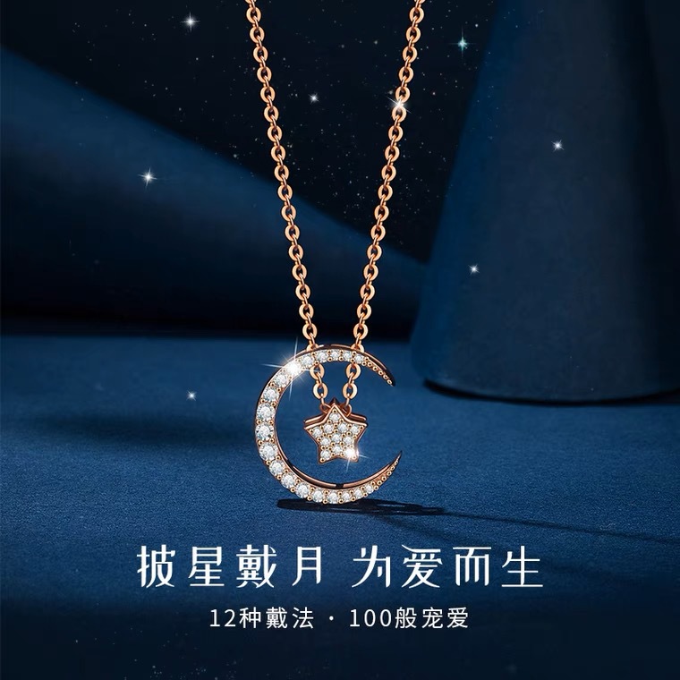 Summer Accessories Hot Style Star Wearing Moon Necklace New High-end Light Luxury Women's S925 Sterling Silver Clavicle Chain Star