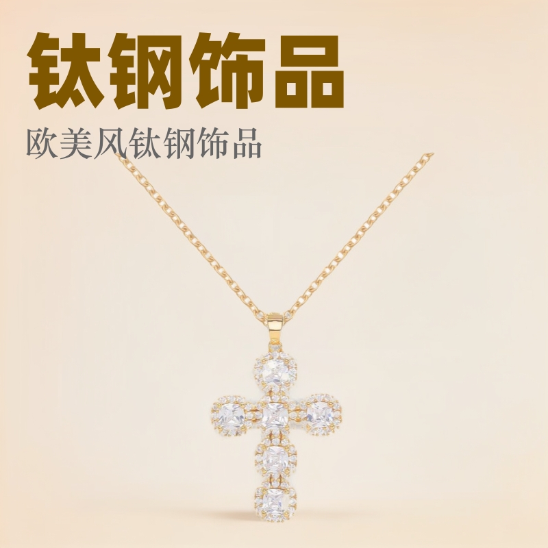 Europe and the United States cross-border diamond cross personality hip hop trend simple temperament all-match high-end titanium steel necklace women