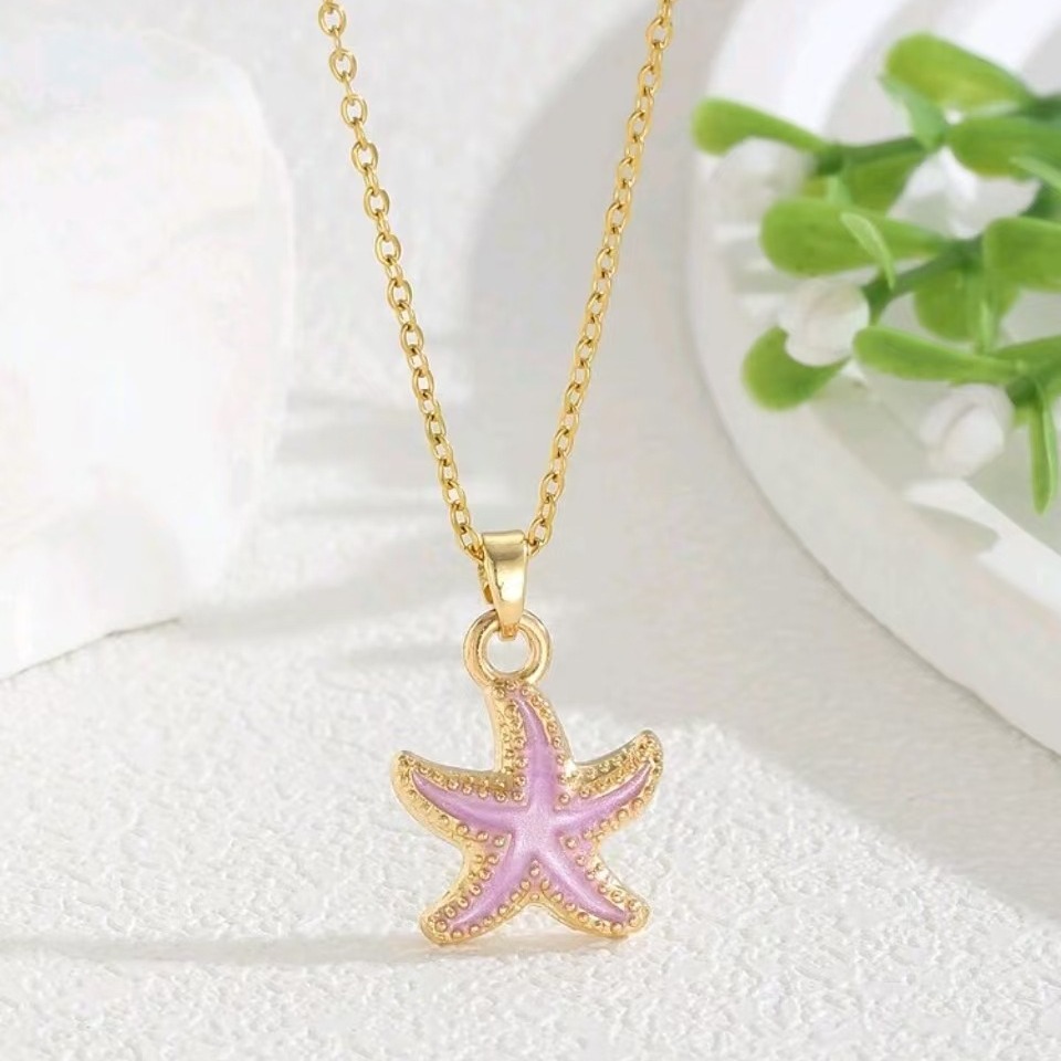 Summer Fashion Simple Blue Starfish Pendant Necklace Women's High-end Sense Cute Fresh Ocean Style Clavicle Chain Necklace Chain
