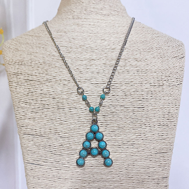 Versatile Clavicle Chain, High-End, Non-Fading Turquoise Letter Necklace, Sweater Chain, Women's European and American Jewelry Hot Style Wholesale