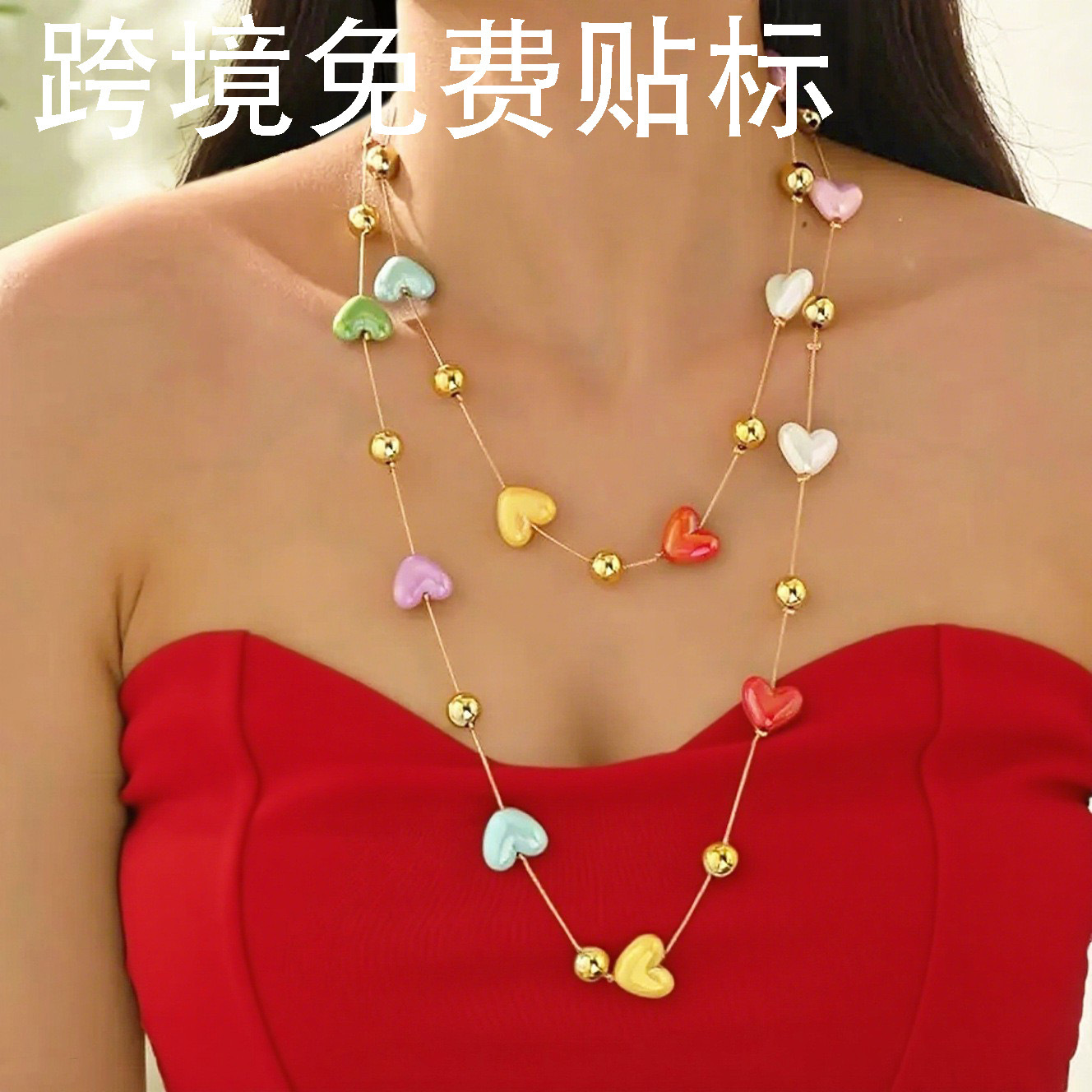 Summer Hot-Selling Dopamine Love Necklace, Colorfulful Love Necklace, Sweet, Simple, Elegant and High-End Necklace Set