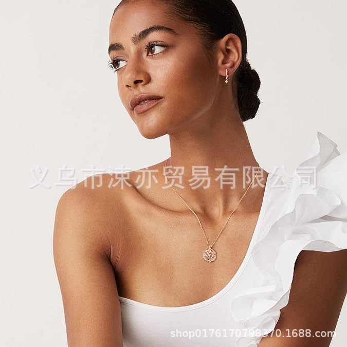 Amazon Personality Carved Coin Pendant Beautiful Bohemian Necklace Romantic Fashion Chain Gift Jewelry for Women