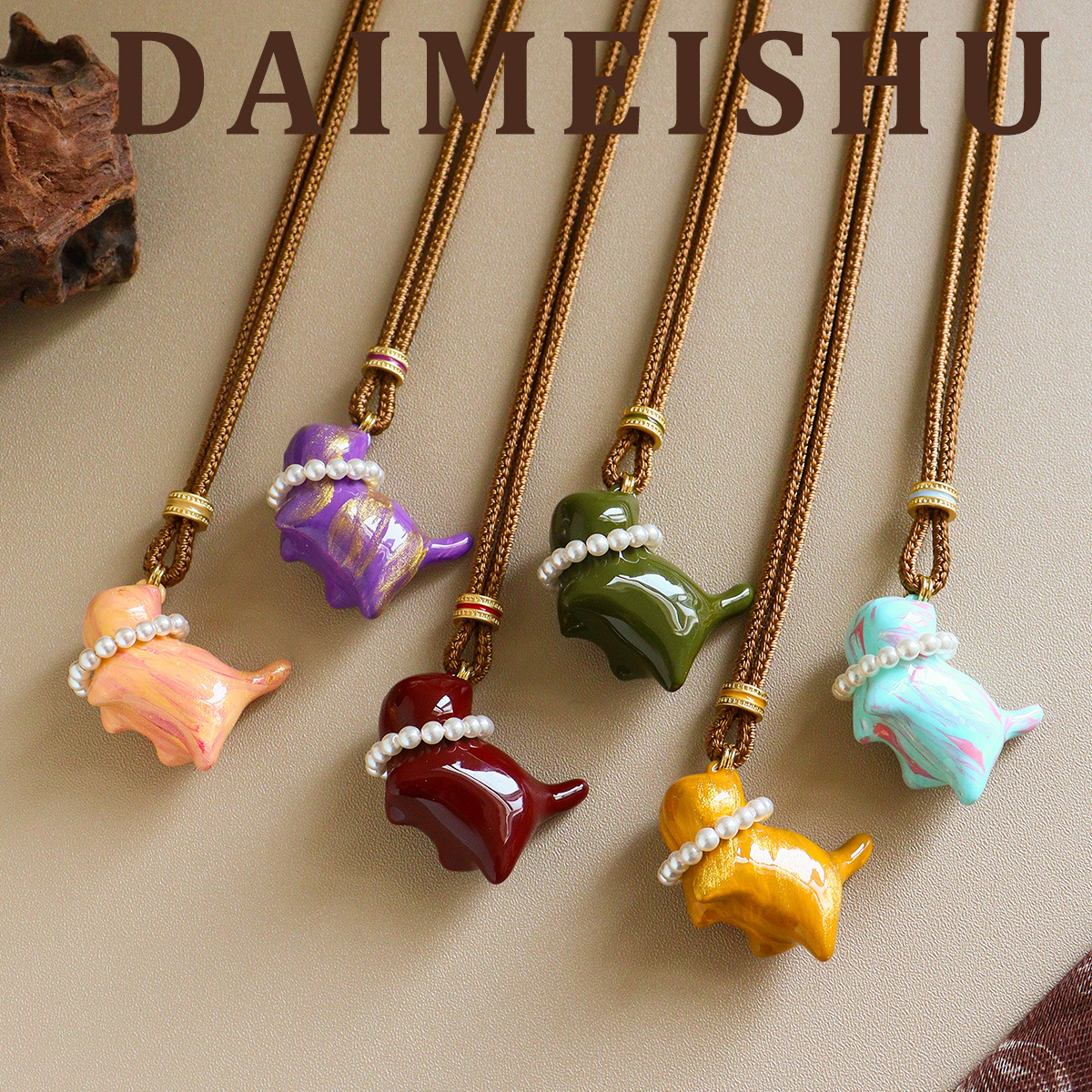 Original Fashionable and Exquisite Colorful Oil-Dropped Pearl Cat Sweater Chain Accessible Luxury High-End Elegant Versatile Long Necklace for Women