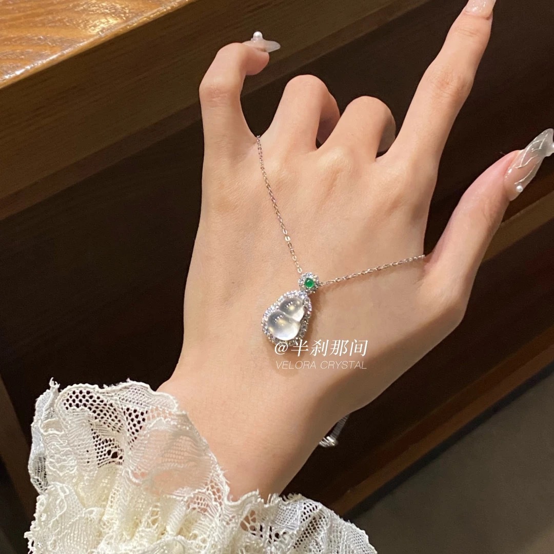 New Chinese-Style Gourd Imitation Chalcedony Pendant Necklace for Women, Light Luxury Niche High-End Qixi Festival Gift Trendy Versatile Accessory