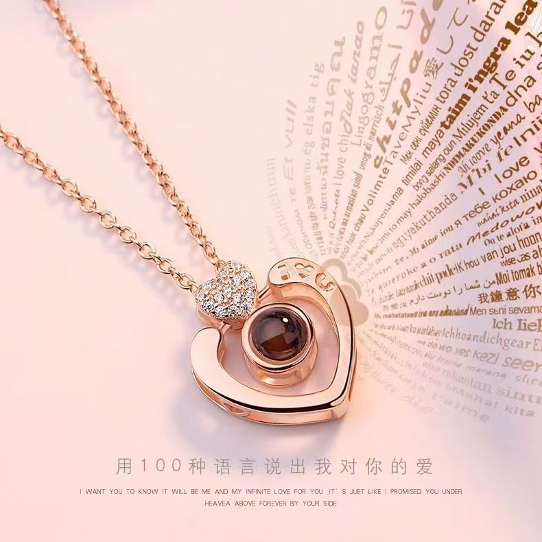 Double heart copper necklace 100 languages I love you projection fresh sweet elegant clavicle chain picture customization