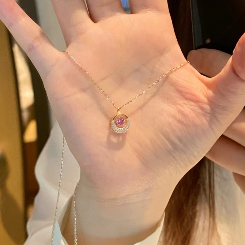 Perfume Bottle Necklace Mother-Of-Pearl Powder Zircon Temperament Necklace Sweet Fashion Light Luxury Simple Jewelry Wholesale Dropshipping