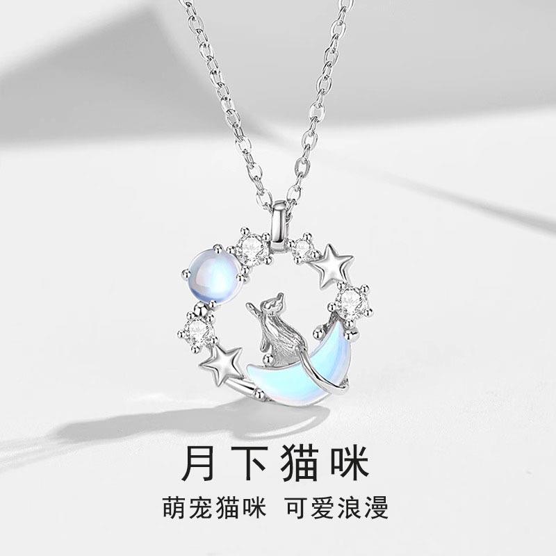 S925 Sterling Silver Moonlight Cat Necklace for Women 2025 New Summer Style Accessible Luxury Exquisite Cold Feeling Non-Fading Clavicle Chain