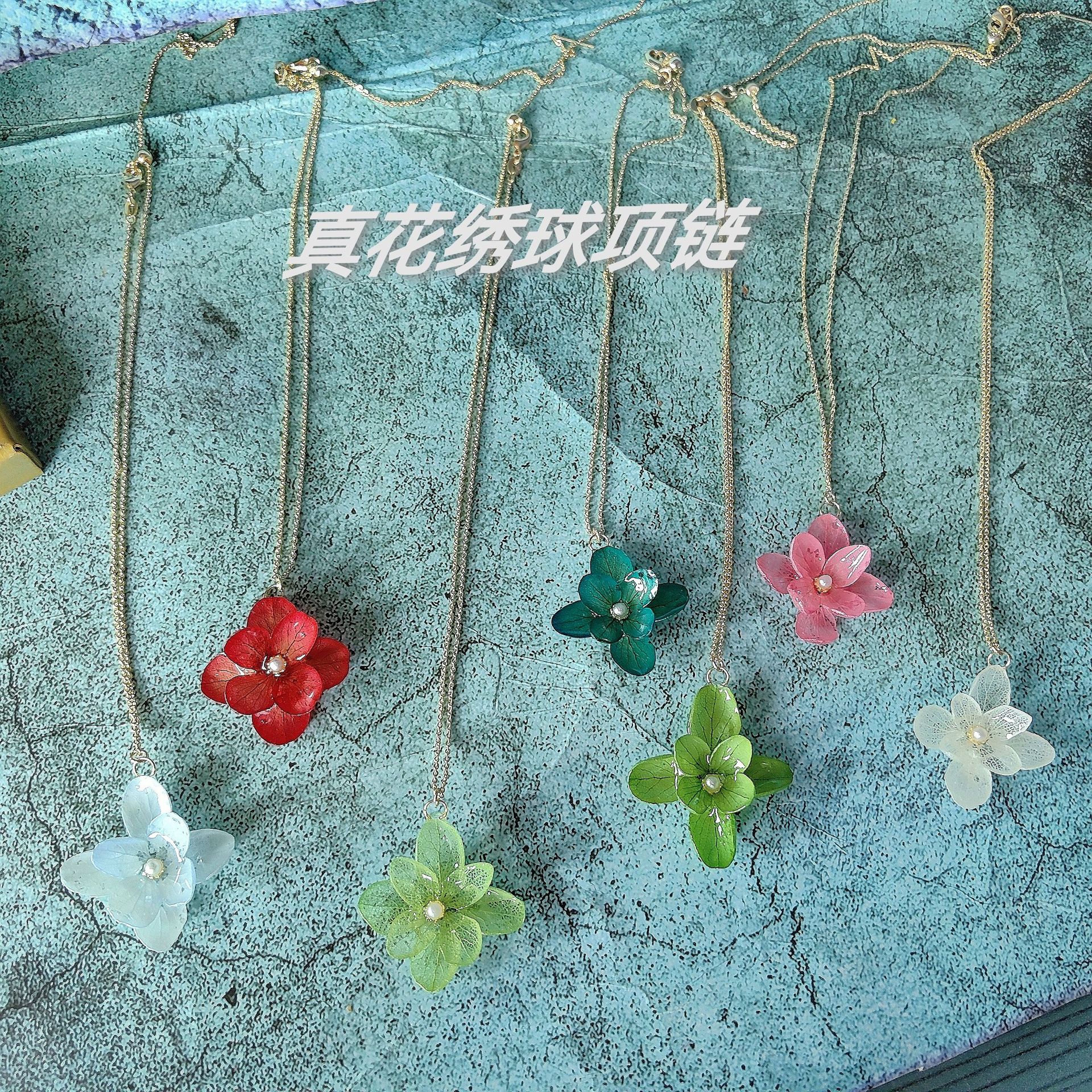 Natural True Flower Necklace Niche Super Immortal Gentle Eternal Flower Gradient Hydrangea Necklace 18k Gold Clavicle Chain for Women