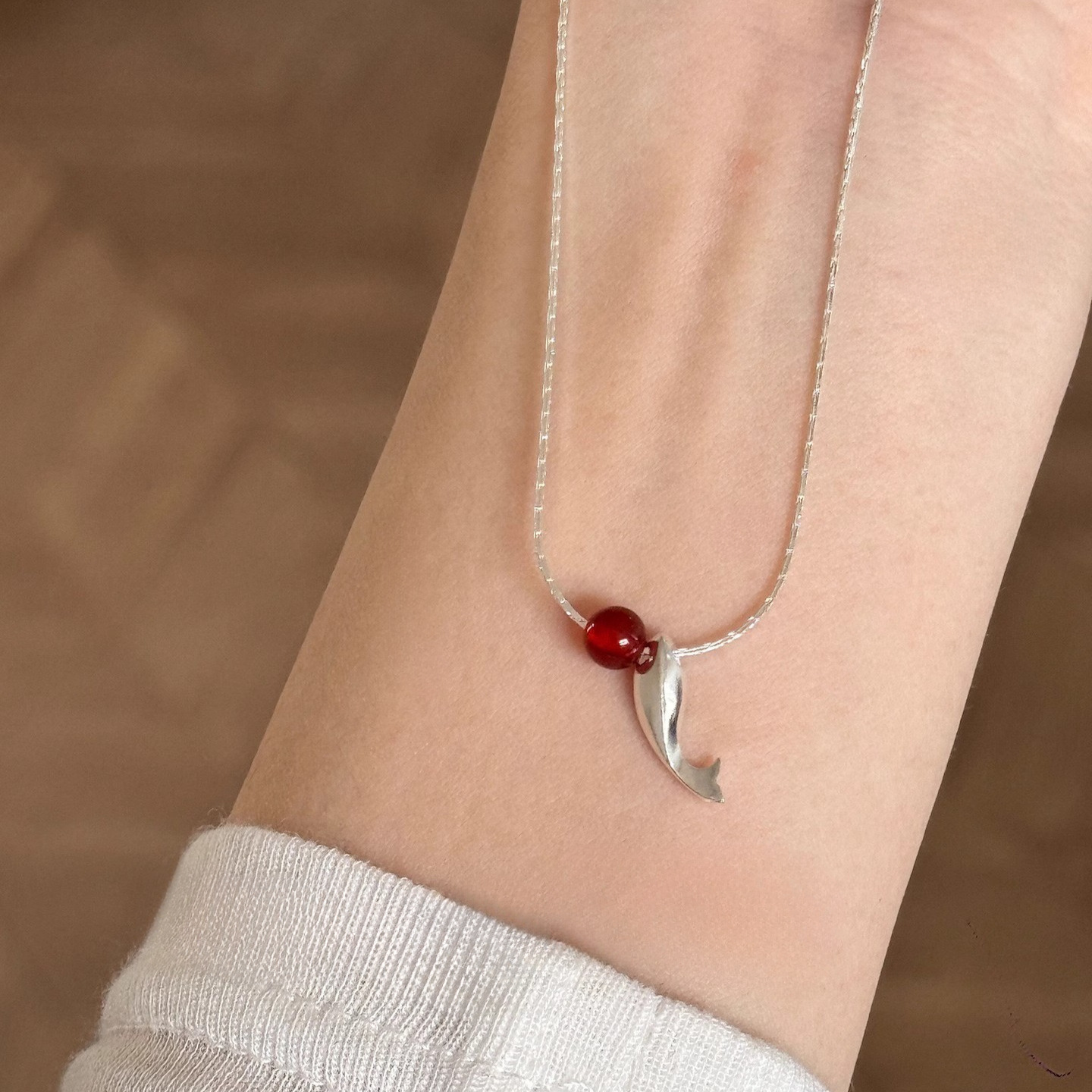 S925 Sterling Silver Koi Fish Red Agate Necklace Women's High-End Sweet Versatile Ins Niche Design Korean Style Clavicle Chain