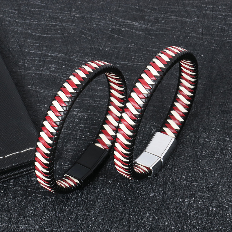 Leather Bracelet Men's trendy cross-border Fashion multi-strand leather rope woven bracelet stainless steel magnetic buckle bracelet