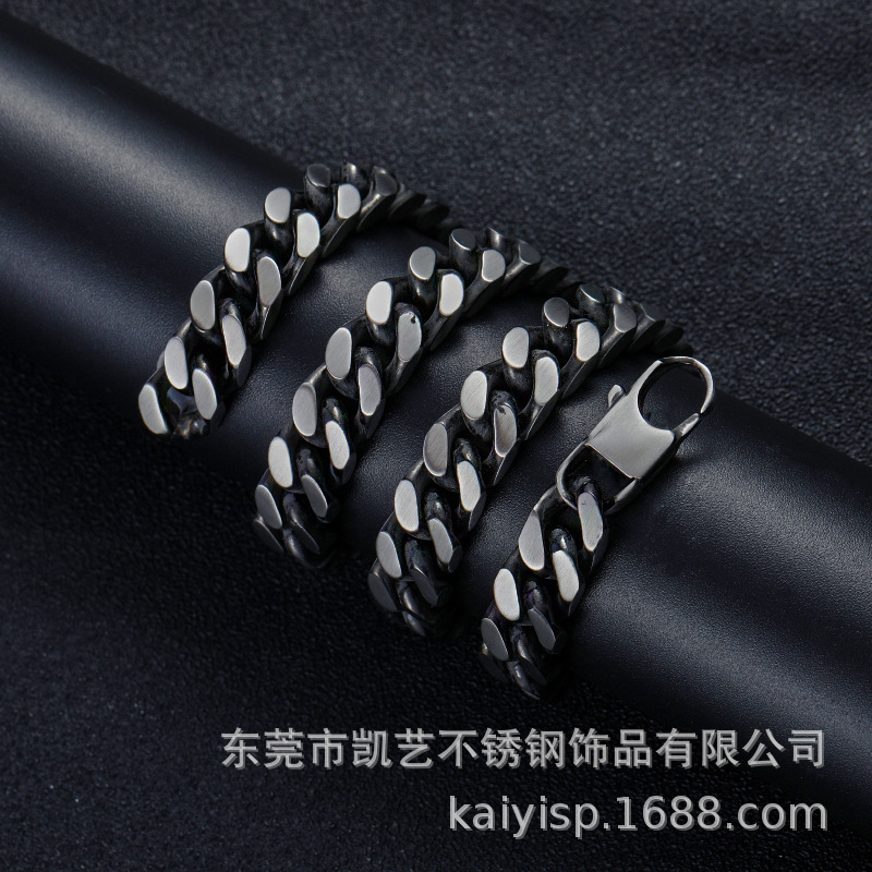 European and American Fashion Hip Hop Frosted Black Base Stainless Steel Cuban Chain High Street Punk Titanium Steel Four-sided Milled Men's Necklace