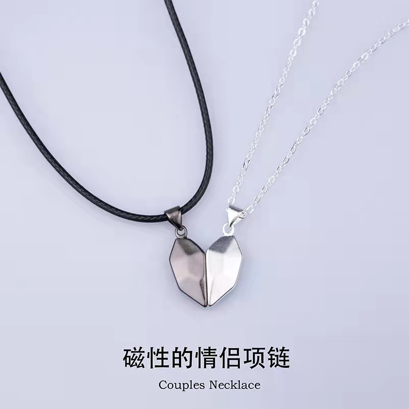 Wishing Stone Couple Splicing and Engraving Creative Magnet Heart Necklace Women's Pendant Men's Clavicle Chain Heart Broken Time Pair
