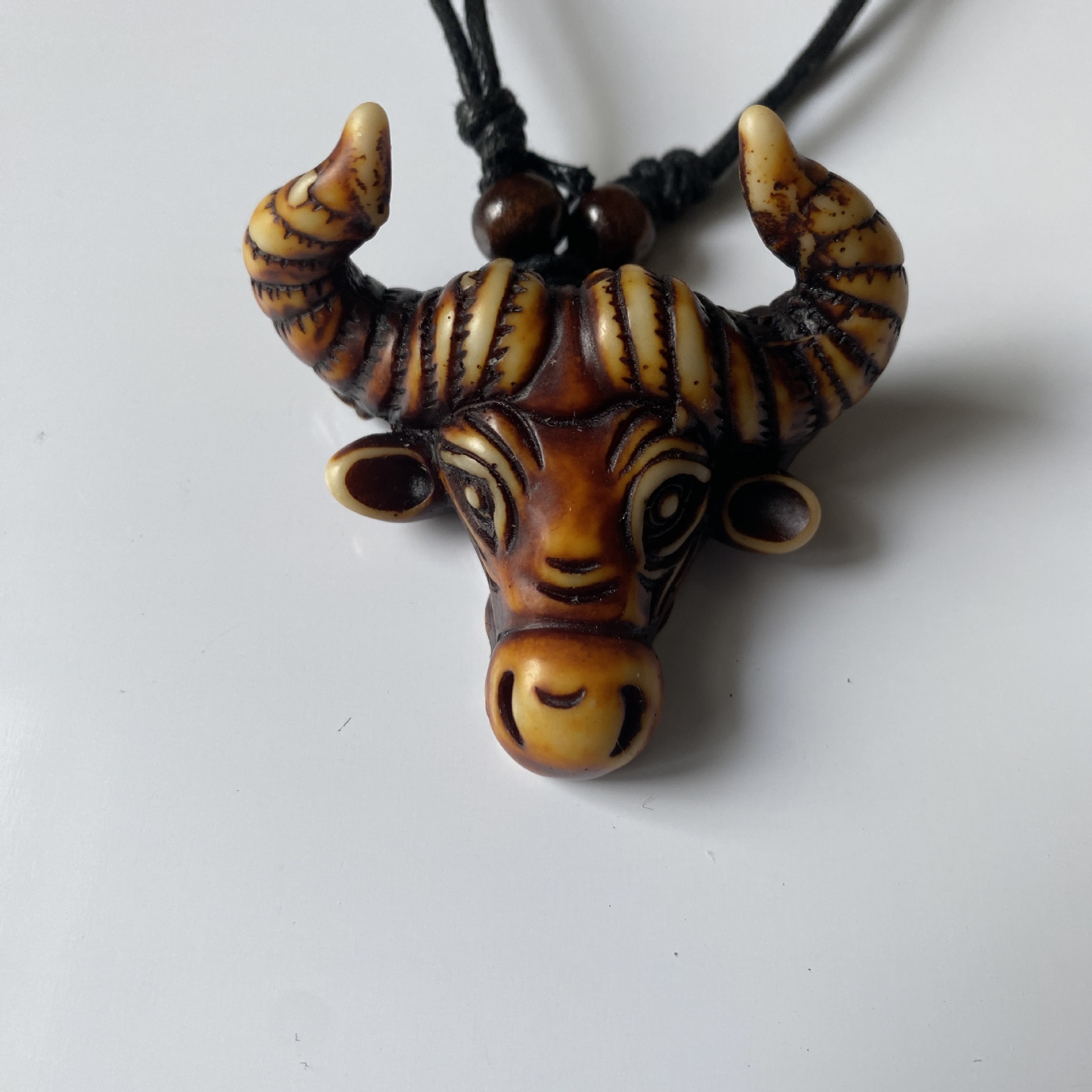 Personalized Ethnic Style Jewelry Men's Necklace Wa Pendant Bull Head Yak Bone Carving Pendant Travel Commemorative Jewelry
