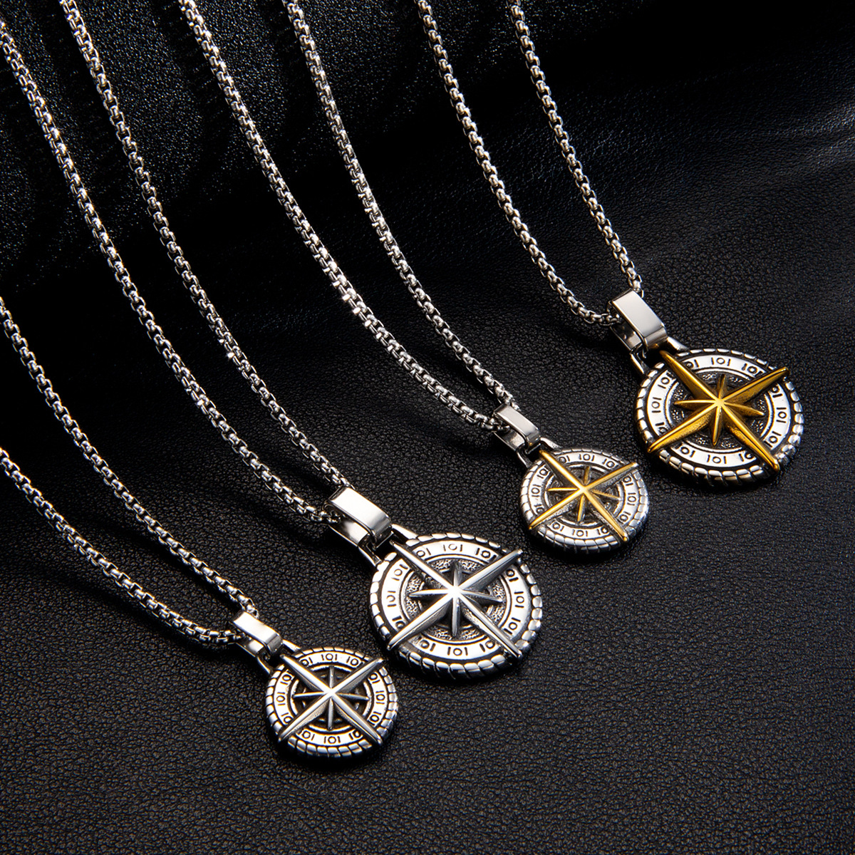 Cross-border hot sale titanium steel retro old compass necklace European and American hip-hop stainless steel men's accessories