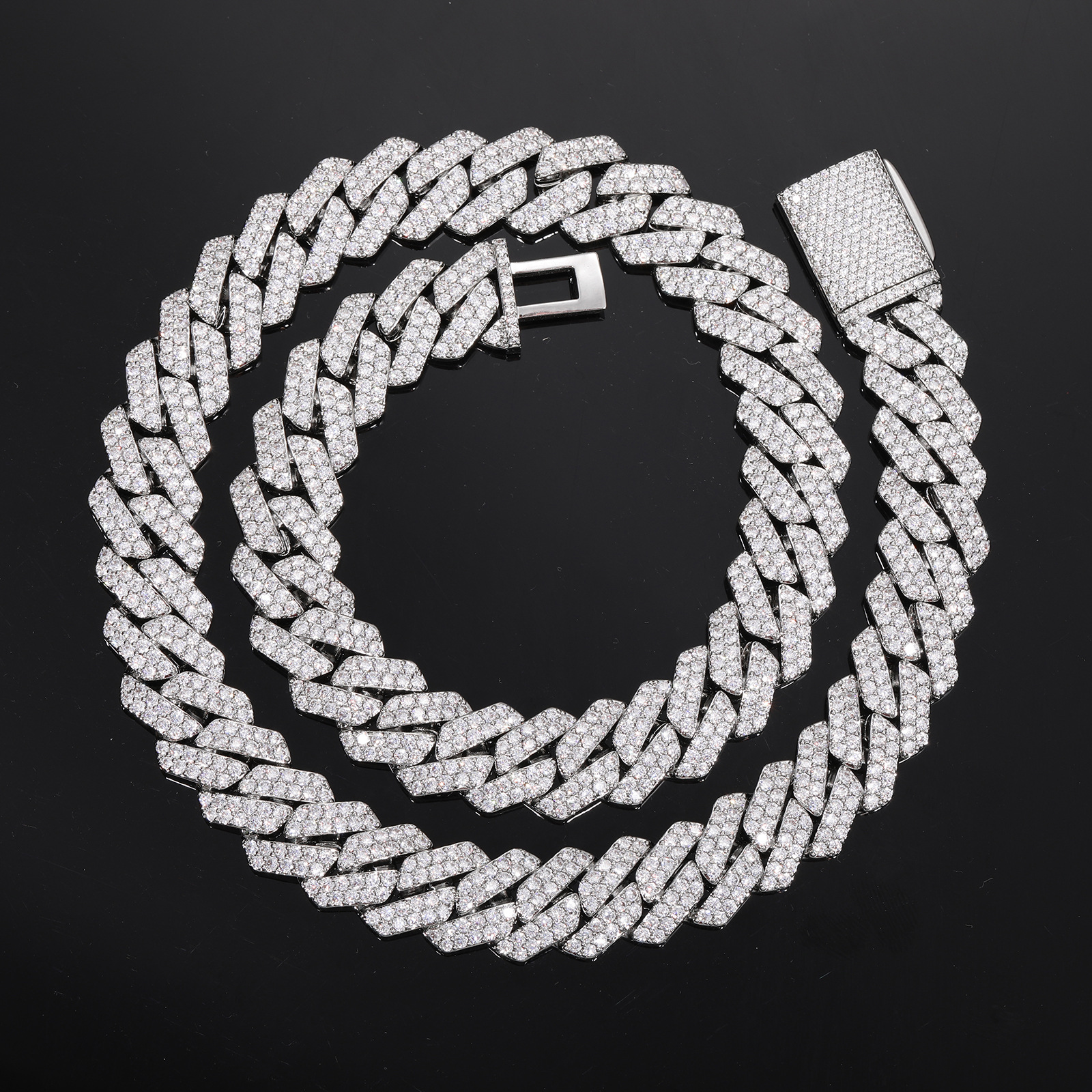European and American Cross-Border 14mm Rhombus Copper Micro-Paved Zircon Cuban Chain Hip-Hop Trendy Double Row Necklace Men's Bracelet Wholesale