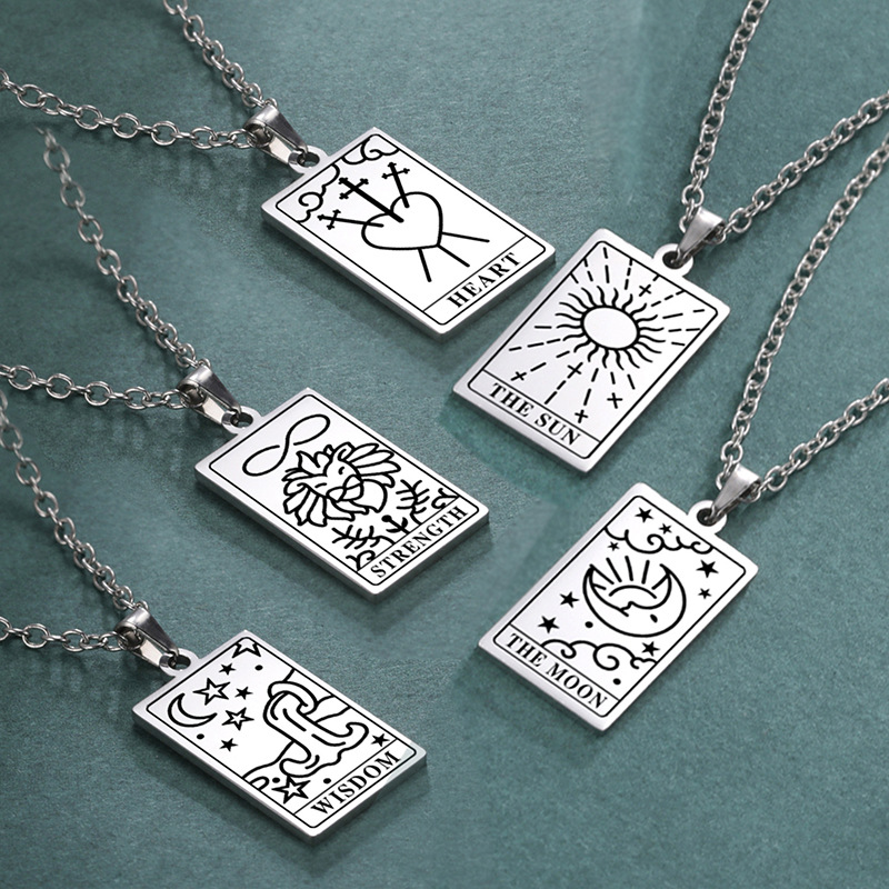 Amazon Hot Selling Men and Women Fashion Tarot Titanium Steel Pendant Star World Fortune Tarot Stainless Steel Necklace