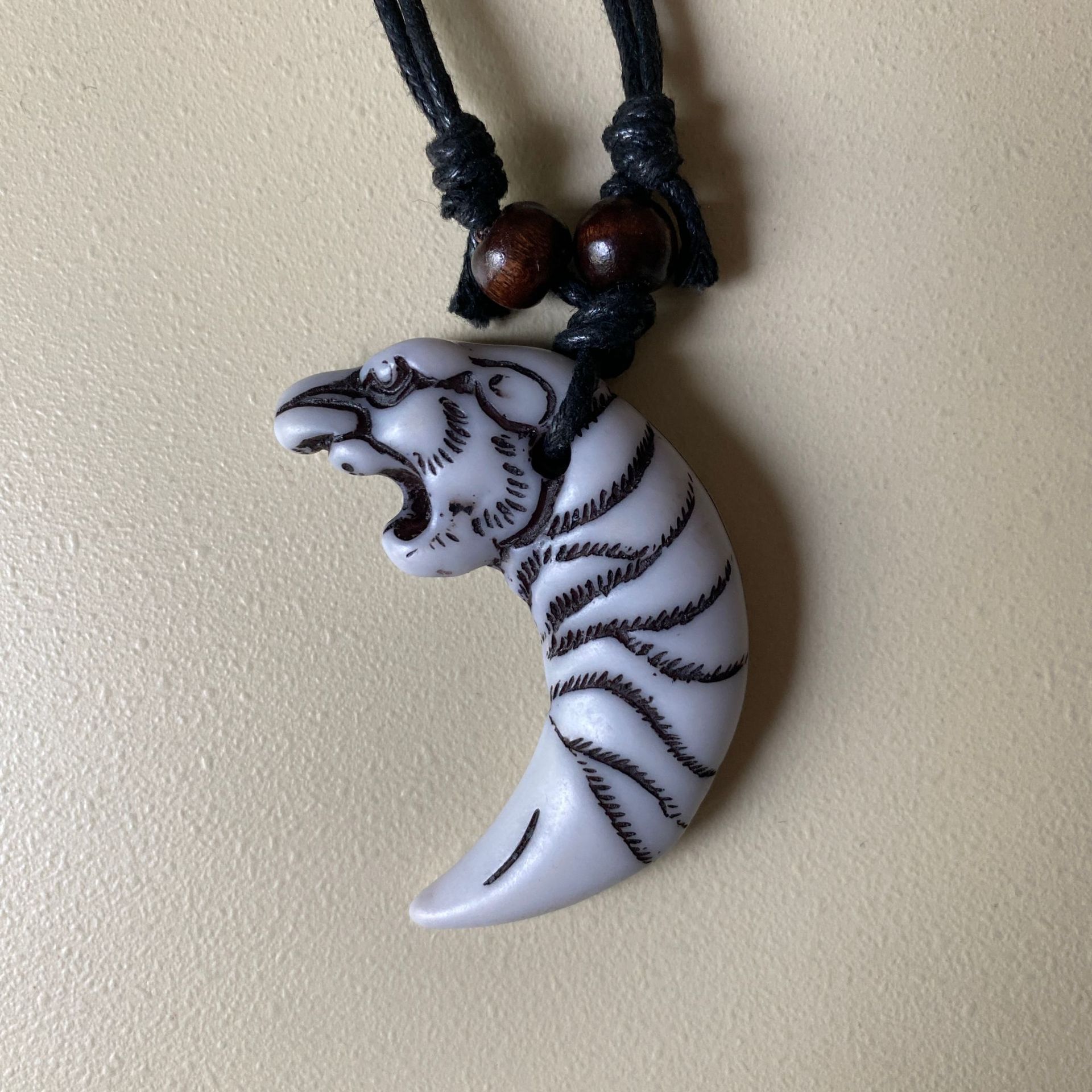 Vintage Men's Necklace for Foreign Trade, Imitation Wolf Tooth Resin Pendant, Imitation Tiger Tooth Bone Carving, Tooth Carving Pendant