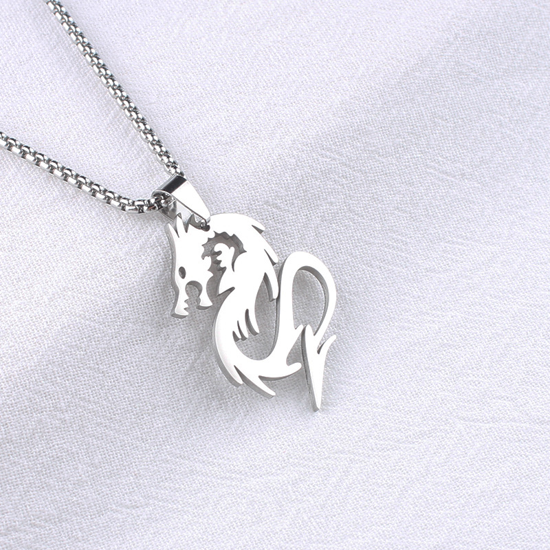 Men's Necklace Cute Zodiac Dragon Pattern Pendant Stainless Steel Jewelry Sweater Chain Non-Fading Birthday Gift Wholesale