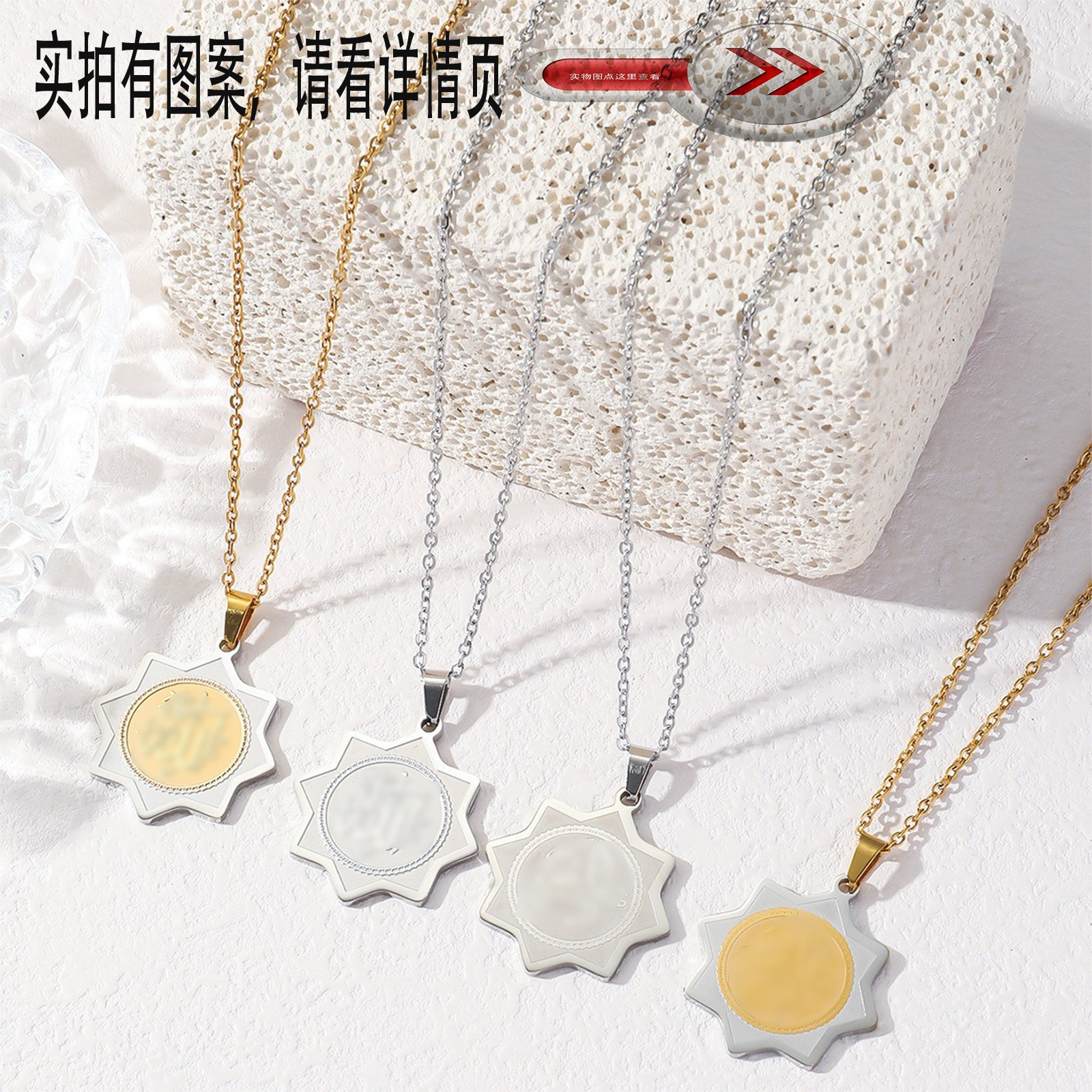 New Square Ancient Totem Flower Pendant Necklace Cool Street Style Accessories Titanium Steel Pendant Necklace Men's Ready Stock Batch