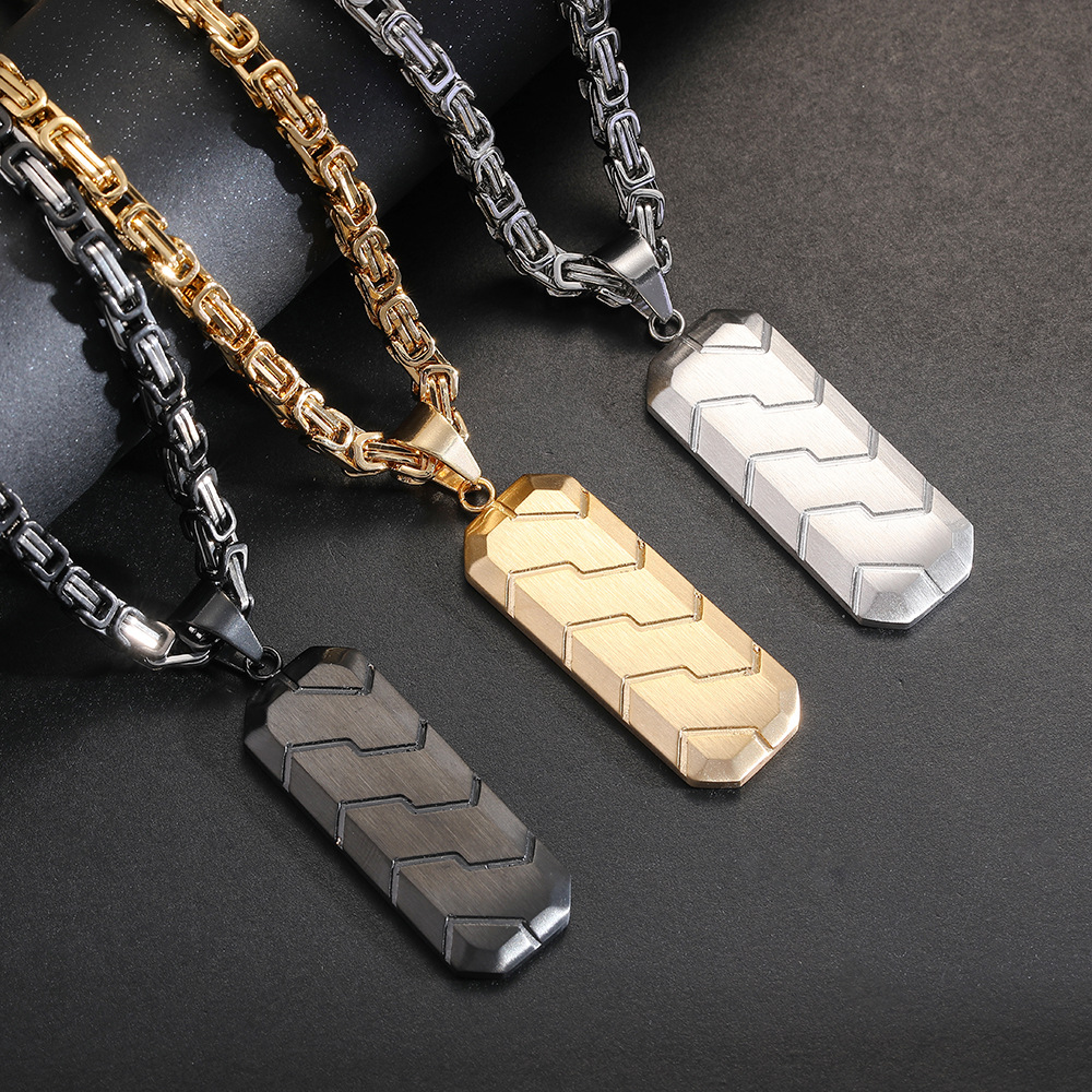 European and American titanium steel geometric tire pattern men's pendant necklace hexagonal three-dimensional pendant hip-hop retro fashion accessories