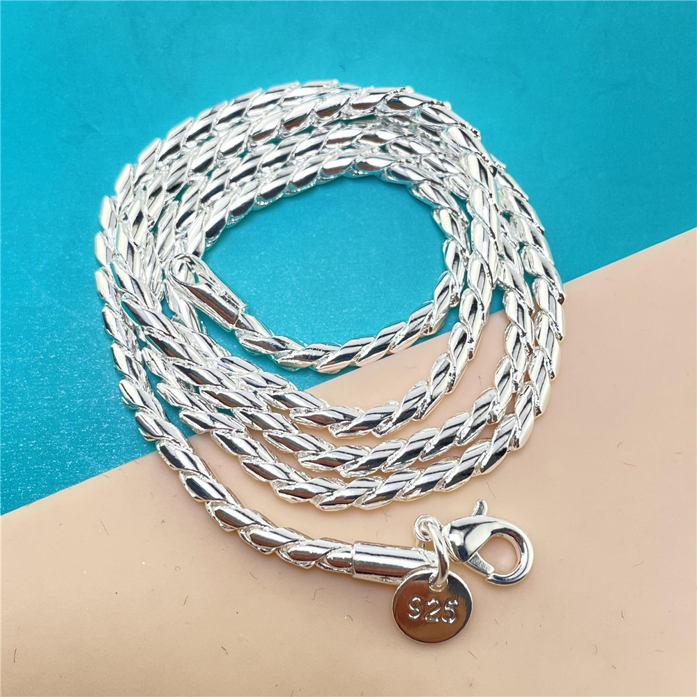 Foreign trade fashion jewelry manufacturers direct batch of 925 plated silver jewelry men's twisted rope necklace round snake chain YN133