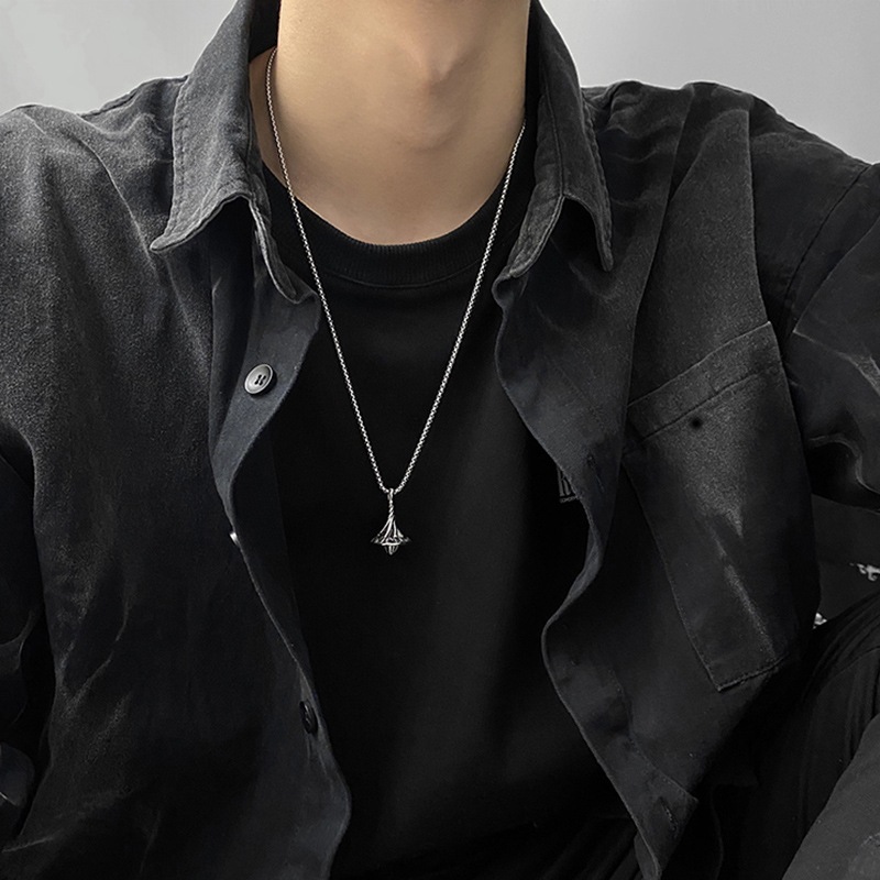 Simple letter alien spaceship pendant men's hip hop personality online celebrity necklace women's ins sweater chain temperament commuter fashion