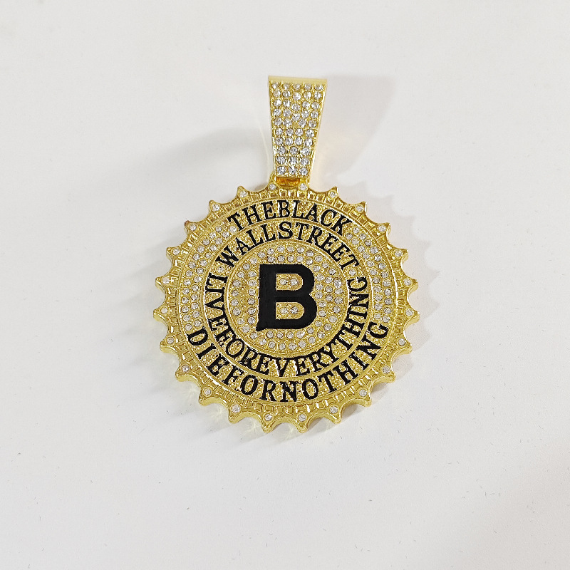 Cross-Border Supply American Hip-Hop Brand Round B Diamond Letter Pendant Full Diamond Cuban Necklace Men's Long Chain