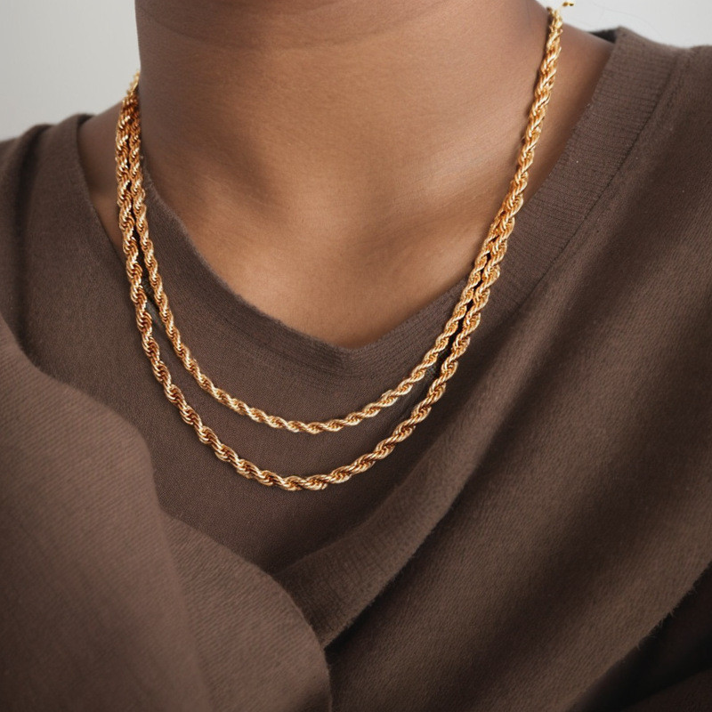 Manufacturers supply vacuum electroplating 18K gold twist chain stainless steel twisted chain men's hip hop Earth cool jewelry chain