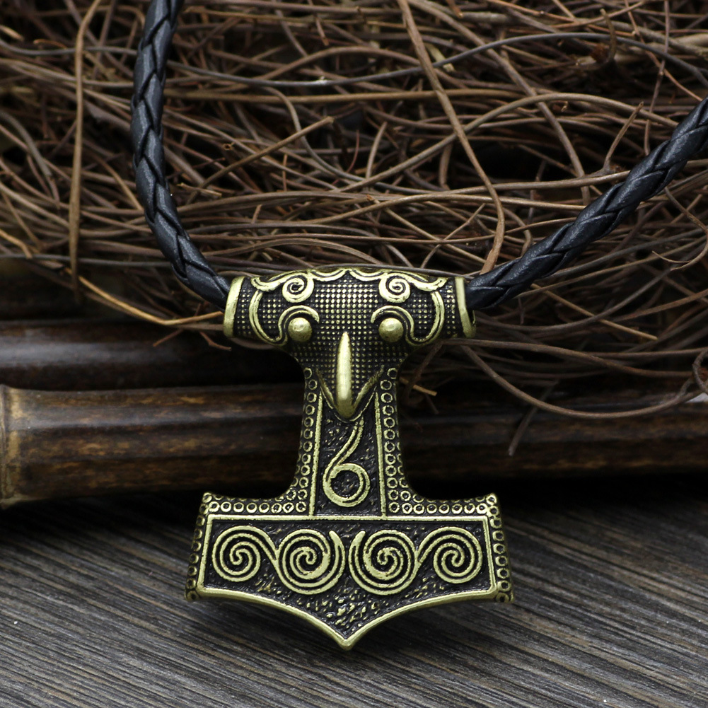 Foreign Trade Hot Sale Thor Hammer Mjolnir Viking Hammer Navia Pendant Crow Head Men's Necklace