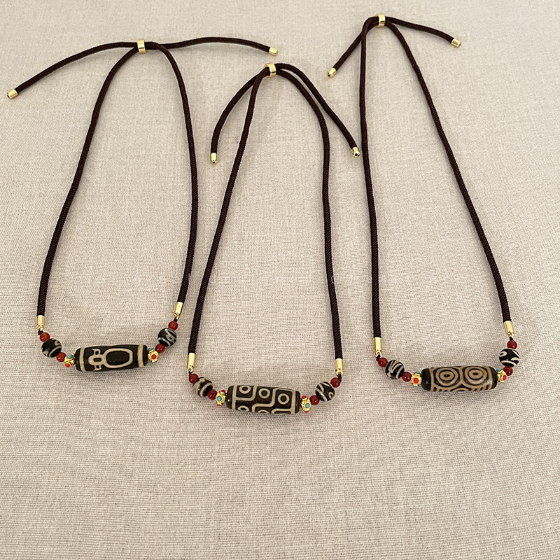 Ethnic Xizang Style Nine-eye Bead Necklace Female Niche Design Sense Internet Celebrant Accessories New Chinese Style Retro Woolen Chain for Men