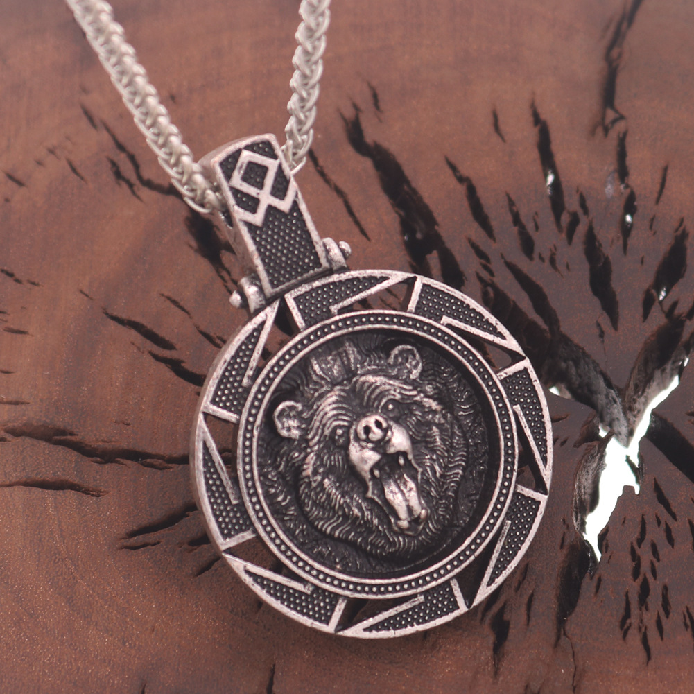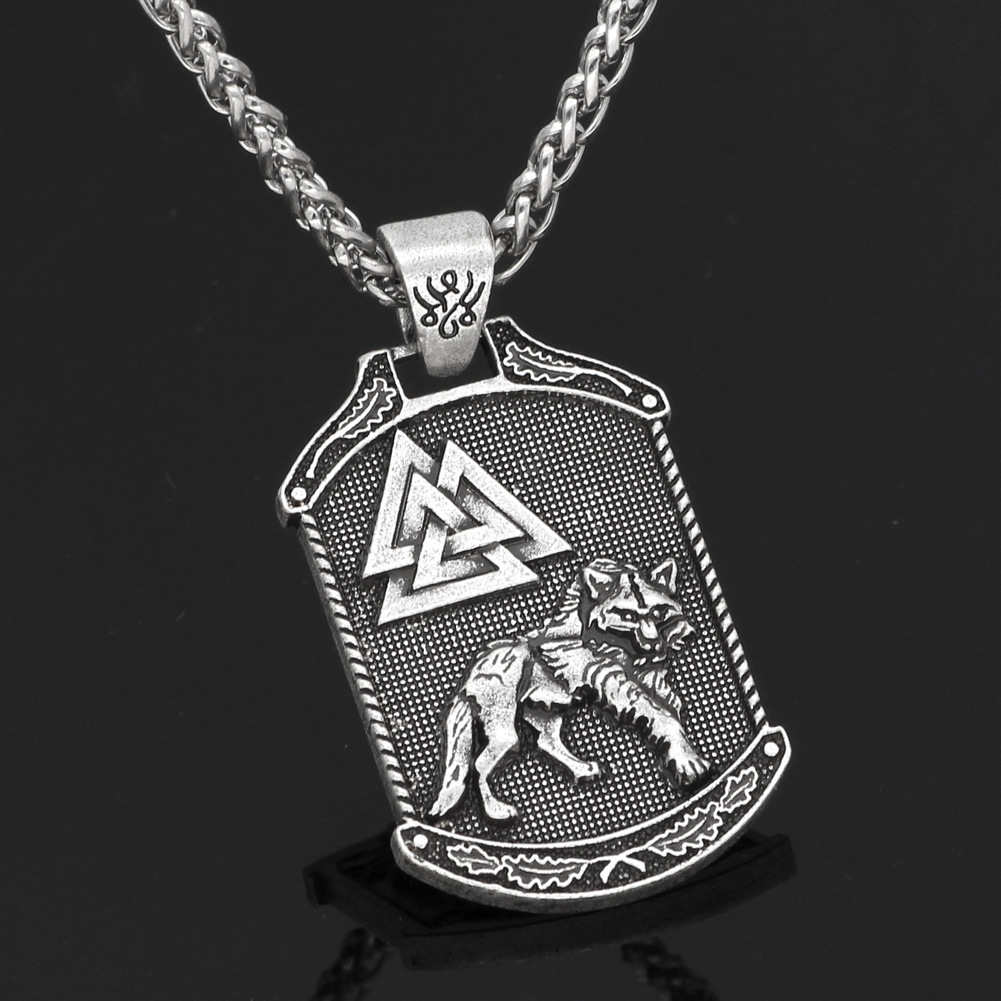Nordic aoding wolf head zinc alloy pendant men's Viking Luen character amulet necklace double-sided pattern jewelry