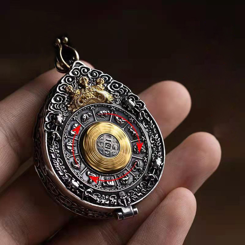 Buddha Head Heart Sutra safety buckle pendant men's trendy personality rotatable necklace Thai Silver Hollow retro ethnic style jewelry