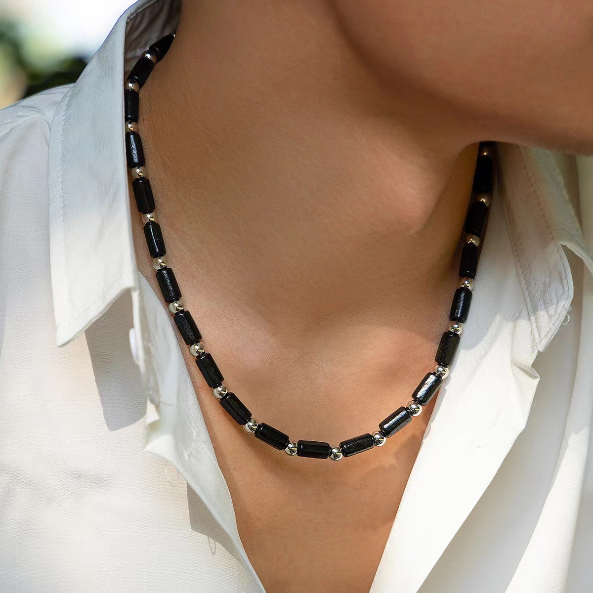 Spring Creek Water Jewelry Stainless Steel Six-sided Grinding Steel Color Necklace Gold Men's and Women's Neutral NC-1121