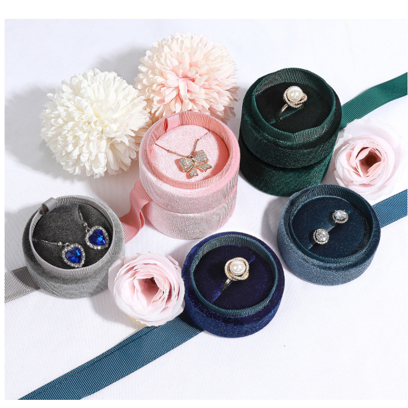 In-Stock Fashion Round Ribbon Ring Pendant Box Korean Velvet Proposal Ring Earring Box with Custom Logo