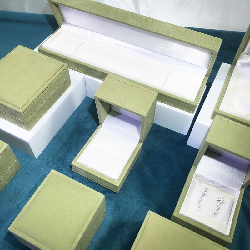 Advanced Sense Lace Bronzing Right Angle Bent Edge Jewelry Box Grass Green Paper Velvet Printed Jewelry Box Earring Box Ring Box