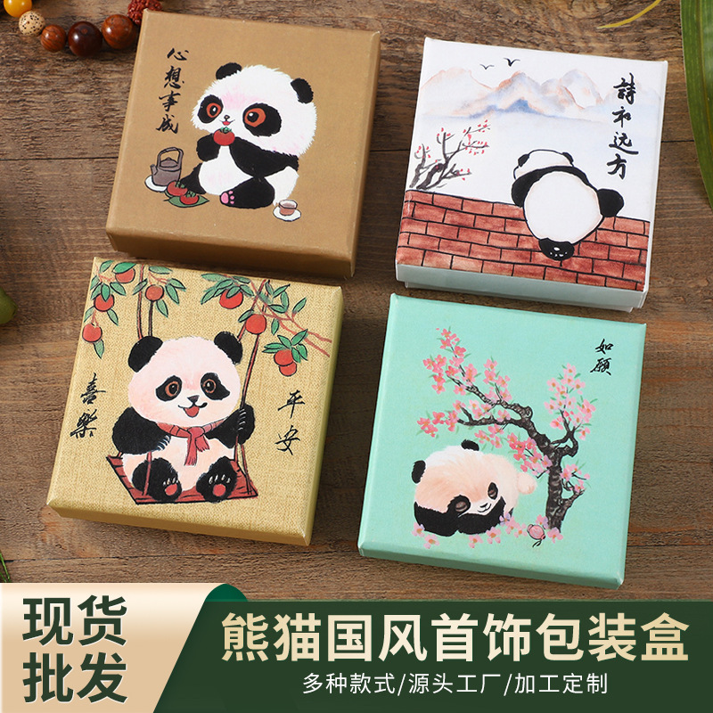 Heaven and Earth Cover Paper Packaging Box Creative Panda Hand-Painted Chinese Style Jewelry Packaging Box Retro Style Bracelet Gift Box