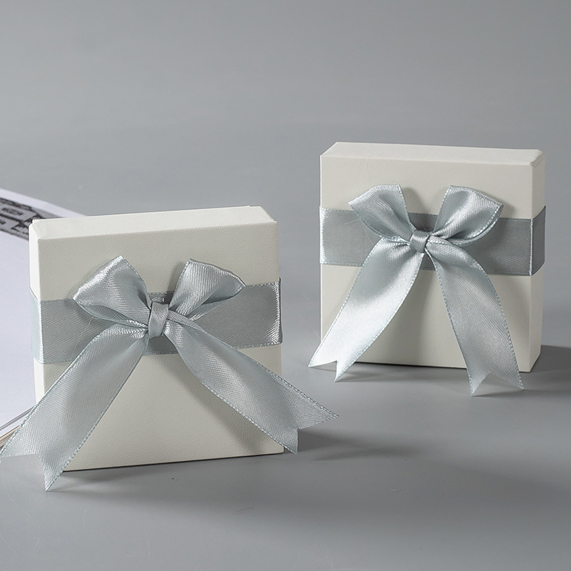 Jewelry Box Simple White Ribbon Bow Pendant Box Jewelry Necklace Box Pendant Gift Box