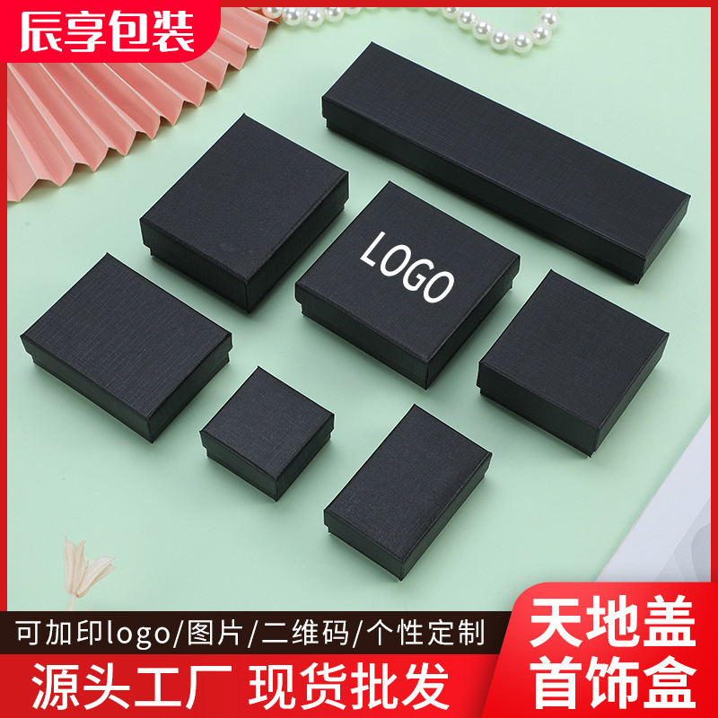 Heaven and Earth Cover Jewelry Box Jewelry Packaging Box Black Multi-Specification Jewelry Packaging Box Ring Necklace Storage Box Wholesale