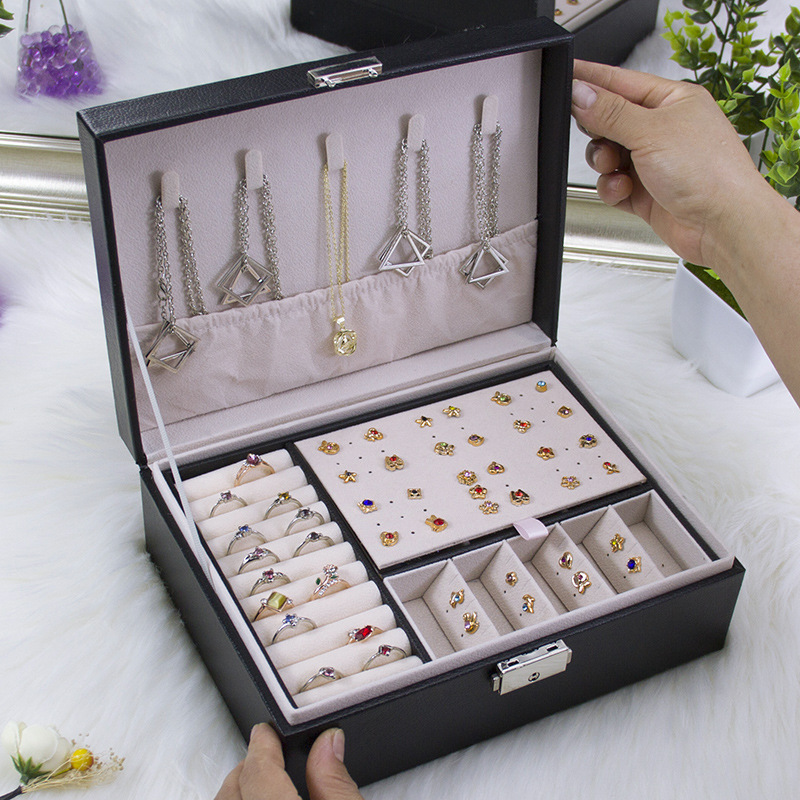 Upgraded Double Layer Wooden Jewelry Box with Lock Earrings Earrings Storage Box Jewelry Box Gift Box Cross-border in stock