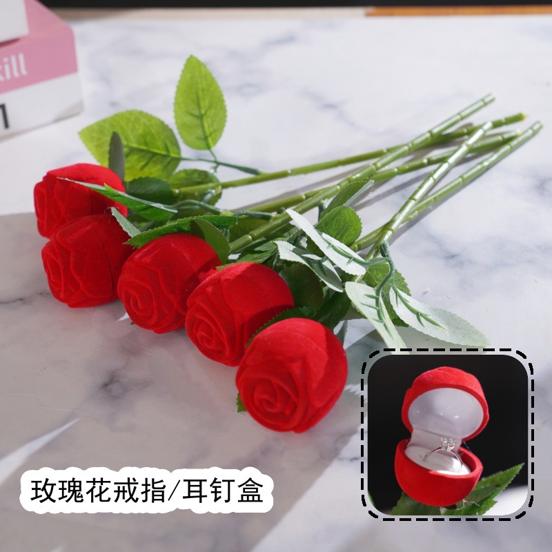 Single Rose Shape Ring Box Simulation Rose Jewelry Box Creative Proposal Valentine's Day Gift Gift Wholesale